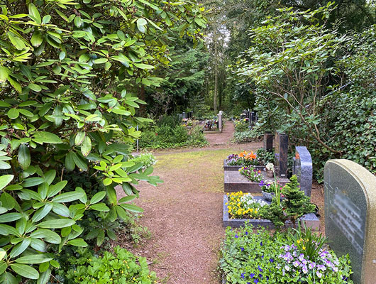 Verstorbene finden auf unseren sechzehn Friedhöfen ihre letzte Ruhe. Angehörige und Besucher können Abschied nehmen und trauern, sich erinnern und gedenken oder auch einfach nur zur Ruhe kommen.