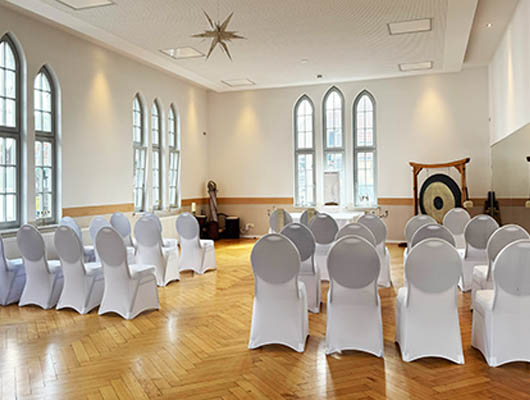 Das Trauzimmer befindet sich im 2. Obergeschoss und verfügt über 20 Sitzplätze. Im historischen Rathaussaal finden größerer Hochzeitsgesellschaften mit bis zu 80 Personen Platz.